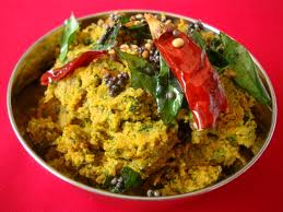 5 Heat oil in a pan for the Seasoning, add the mustard seeds, let them pop and add the split gram dal and curry leaves and fry till the dal turns red. Add this seasoning along with lemon juice to the ground pachadi. Serve with hot steamed rice.